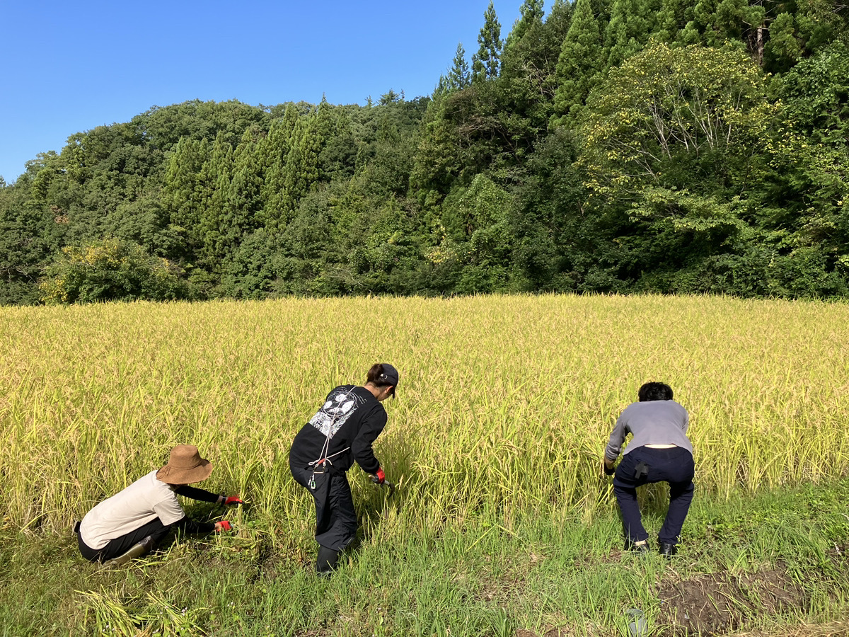 「なるべく自然の循環の一部であれるように」と、農薬を一切使わずに育てたお米を、一緒に鎌で手刈りしていきましょう。